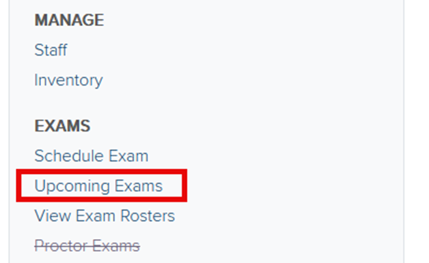 - The first is from your Upcoming Exams feature in the left-hand navigation bar