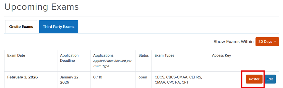 *Not all Administrative roles have access to approve an exam roster. If this option is not available for you, please connect with your NHA representative for assistance.