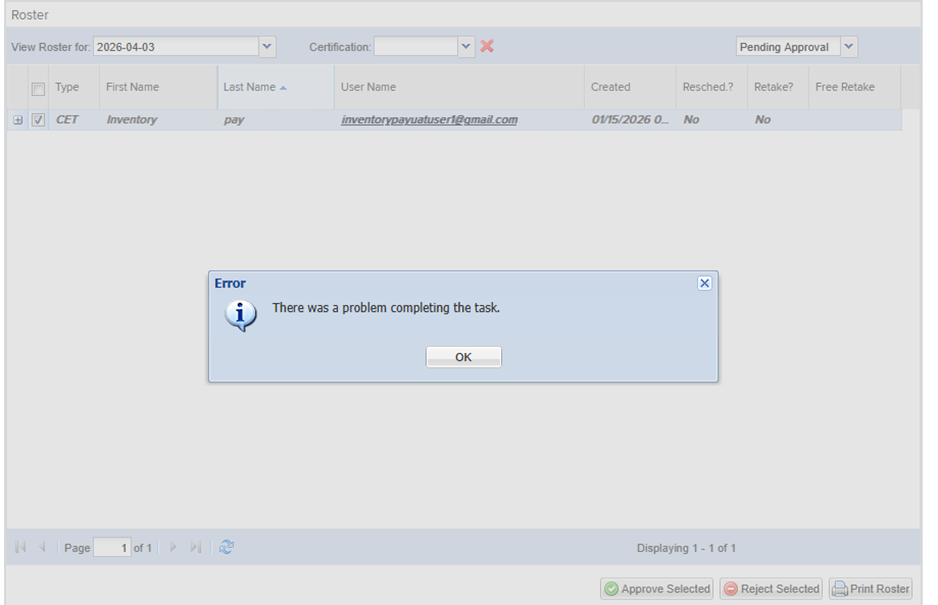 Approving a Roster for an NHA Exam